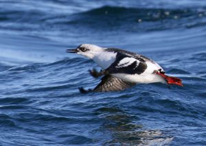 17日、この日は落石クルーズに乗船予定だったため、前夜から天気予報に見入っていましたが天候、風、波共に予報は全く問題ない状況でした。予定通り06:30から朝食をいただき07:30に出発して落石港に向かいました。寒さは厳しい朝でしたが珍しく風は全くなく天気も快晴でした。落石港到着後はライフジャケットの装着やトイレを済ませて08:30に乗船して2時間半ほどのクルーズを行いました。出港すると漁港内にいるコオリガモ、クロガモを間近に撮影させていただきました。距離が近いせいでコオリガモの「アオナ、アオナ」という独特の声もじっくり聞くことができました。外洋に出ても海上が穏やかだったことからかなり遠くまで見通すことができ、さらには手すりにつかまらなくても立っていられるような状況でした。全体的にウミスズメ類は多い印象ではなかったですが、このクルーズの主役であるウミバトの個体数が多く、ウミガラス、ケイマフリの姿も頻繁に見られました。ほかにもハシブトウミガラス、ウミスズメを間近にじっくり撮影する機会があり、このクルーズらしくクロガモ、ビロードキンクロ、シノリガモといったカモ類撮影の機会もありました。2時間半ほどのクルーズでしたが稀に見る穏やかな落石クルーズでした。