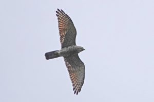 22日、前回同様3連休の初日ということで、大変に混雑している都内を予定通り08:00に出発。天気予報によると今日は雨で午後にかけて上がってくるだろうとの予報でした。早朝は予報通りに小雨が降っていて、いつもながらさて今日はどうしようかといった感じでした。ただ車窓からの風景を見ていると天気が回復してきていることは容易に想像できる状況で、空は次第に明るくなってきていました。昼前に到着したころには空は次第に青空に変わりつつあり、予想以上に天候の回復が早くなっている気がしました。ただ天候が回復しても即、タカが飛んでくるわけではないため、この日は旅程通りに畳平に向かい、晴れマークが出ている明日をタカ観察に充てようと決めました。まずは乗鞍高原との昼間点にある道の駅を目差し、到着後は一旦休憩とし、その間にさまざま連絡をとってみましたが、なんと深夜から早朝の雨量が規定降水量をオーバーしたことから畳平に向かう道が通行止めで、開通するのはおそらく15:00くらいだろうとのことでした。そこまで待っても開通しない可能性もあることから、急遽、この日は白樺峠に向かうことにしました。おおよそ13:00頃に白樺峠駐車場に到着した後は各自観察機材の準備をしていただき、白樺峠タカ見の広場に向かって歩き始めました。すでに空は真っ青で蒸し暑さすら感じるほどでした。到着後はトラベルイヤホンの電源を入れていただき、お好きな場所で観察を開始していただきました。この日は天候は良かったですが、急激に晴れてきたため人はそれほど来ておらず、それほど混雑は感じませんでした。到着とほぼ同時の13:10に10羽ほどのハチクマが左側の尾根から出現して我々の上空を通過し、よく見るとかなりの数のハリオアマツバメが乱舞していました。周辺の林では天候の回復に合わせてゴジュウカラが飛び回り、14:00にはイワツバメの群れも乱舞し始め、やや高い位置を2羽のサシバが通過して行きました。14:40にはどこから来たのか2羽のホシガラスが飛んできてカラマツに止まったことから盛り上がり、14:45にはハチクマのメスが通過して行きました。続けて14:55にはハチクマのオスが我々の真上で旋回し、15:00には当地では珍しいハヤブサが飛んできました。15:20にはまとまった数のハチクマが飛び、オス、メス、幼鳥が揃って飛翔し、またまたオスが真上を旋回しました。15:50には再びハヤブサが飛び、16:20には2羽のサシバが通過していきましたが、これを最後にタカの渡りはほとんど見られなくなり、この日の探鳥を終了しましたが、帰り道ではヤマドリの姿をご覧になったお客様もいらっしゃいました。結局、この日の公式カウント数はサシバ63羽、ハチクマ136羽、そのほかを含めた総数は218羽でした。宿に到着後は温泉で温まっていただき、夕食後は恒例のタカ識別講座を行いました。さて、明日は晴れマーク一色、大きな期待をして寝ることにしました。