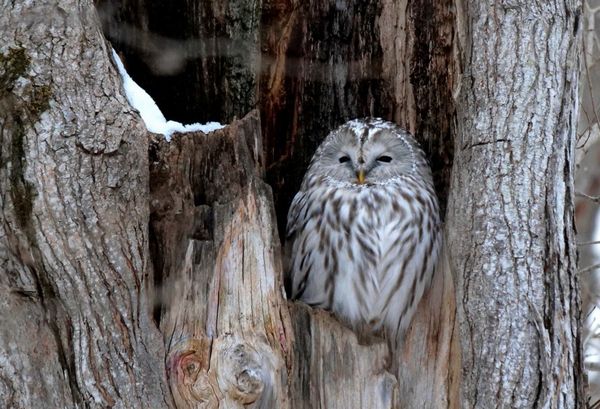12日、曇り空の羽田空港を予定通り出発して現地に向いました。到着後は大阪からご参加のお客様と合流し、観察機材の準備をしてからバスにて出発しました。さまざま報道されている通り積雪はほとんどなく、厳しい寒さも感じないというちょっとおかしな感覚での出発でしたが、最初に訪れた場所では5cmほどの積雪がありました。まずは北海道の小鳥類の基本種ともいえるハシブトガラ、シロハラゴジュウカラが出迎えてくれ、ほかにもヤマガラ、シジュウカラ、ヒガラの姿もあり、いつの間にか間近の木をキバシリが登っていました。さらに森を進むと再びハシブトガラ、シロハラゴジュウカラの姿があったため観察していると、独特の声を発しながら上空をクマゲラが飛んでいきました。さらに進むと再びキバシリが現れ、期待していたエゾフクロウにも出会うことができました。帰る途中には凍っていない池にマガモ、ホシハジロの姿があり、またまたハシブトガラ、シジュウカラ、シロハラゴジュウカラを観察していると再びクマゲラが今度は全く声を発しないで我々の上空を独特の羽ばたきで飛んで行きました。この日は残念ながらシマエナガ、ミヤマカケスには出会うことができませんでしたが時間になったことから鵡川河口に移動しました。ここではまず漁港に向かい、漁港内にいたホオジロガモ、ヒドリガモ、クロガモ、カワアイサ、コガモなどを観察し、意外なほど間近にいたシノリガモのオスもしっかり観察することができました。またやや移動すると間近にクロガモのオスがいたことからじっくり観察することができ、建物の屋根にはオオセグロカモメに混じってシロカモメの姿がありました。そして日没までの約1時間は草原でコミミズクやハイイロチュウヒの出現を待ちましたが残念ながら姿を現すことはなく、飛翔するオジロワシ、そして電柱に止まっているノスリの姿を見て、寒さがかなり厳しくなってくる中、この日の探鳥を終了しました。