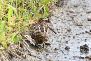 港周辺の入り組んだ海岸の浅瀬で採餌をするダイサギやコサギに混じってクロツラヘラサギがいて盛り上がる。しかし、その後は鳥影のないまま16:20に伊平屋島に到着。直ぐに水田地帯へ行く。沖縄県でも以外と知られていないが、伊平屋島は水が豊かで稲作が盛んな“お米の島”なのだ。田名の水田地帯へ行くと、畦からジシギ類が次々に飛び立つ。殆どがタシギだが、ハリオシギやチュウジシギも混じる。ダイサギ、チュウサギ、コサギなどのサギ類が40羽程休んでいて、夏羽の綺麗なアマサギもいる。変なヒバリがいて後の写真判定でヒメコウテンシだった。さらに、夏羽のノビタキもいて、渡りのピークに当った期待が持てる。18:10 ホテルにチェックイン。海産物がメインの豪華な夕食に皆さん笑顔になる。