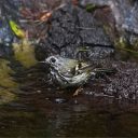 20日、天気が心配でしたが予報は大当たりで早朝から快晴。見事な雲海が見える中、早朝に出発して、昨日見ることができなかったクロツグミを狙いました。まずは愛想が良いゴジュウカラ、シジュウカラ、ヤマガラ、コガラが引っ切り無しに姿を見せてくれたことからしばらく観察していると、いよいよクロツグミがさえずりだしたため声が聞こえるほうに移動しました。移動すると例年に比べてさえずっている個体が少ない印象ではありましたが、なんとか樹上でさえずっているクロツグミを何度か望遠鏡でとらえることができ、さえずっている姿をじっくりと観察することができました。また待っている間にはオオアカゲラも見ることができ、コルリもかなりさえずっていたため観察に向かいました。ただこの個体は高い木の上が好きなようで見ることはできたもののかなり見上げるような角度になってしまいました。一旦、朝食をいただいた後は再度出発し、この時間は戸隠高原では外すことができない鏡池に向かうことにしました。入り口では、トガクシショウマやシラネアオイ、イワカガミの花を見て、その後はここまで歩いていない、ひっそりとした小道を歩いて、そこからは、ノジコやアオジ、クロツグミのさえずりを聞きながら歩き、途中では巣作り中と思われるキビタキのつがいやキバシリ、鏡池の湖面に浮いている美しいオシドリのオスなどを見ながら鏡池に到着しました。この日は無風だったことから戸隠山と周辺の新緑が湖面に映り、文字通り鏡のような鏡池を堪能することができ、鳴きながら悠々と飛翔する、つがいと思われる2羽のノスリの姿も見られました。戻る途中ではさえずっているコルリの姿をようやくしっかり観察することができたほか、アオゲラの姿を見てから予定よりも45分ほど遅れて一旦昼食の時間とし、恒例の戸隠蕎麦をいただきました。遅れたことから残る探鳥時間は1時間ほどになってしまいましたが、再び探鳥に行くことにしました。ただここで天気予報よりも1時間ほど早く雨が落ち始め、最後の1時間は雨の中での探鳥になってしまいました。ただ珍しく見通しの良い横枝でウグイスがさえずり、美しいキビタキが何度も姿を見せてくれてしばらくの間、楽しませてくれたほか、イカル、アオジ、エナガの群れなどが見られ、今回のツアーを締めくくりました。