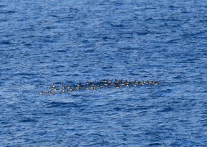 海鳥観察の定番となった大洗~苫小牧航路は長らく企画してきましたが、さらに船が小型の八戸~苫小牧航路は海鳥との距離感が近く、特に秋はミナミオナガミズナギドリに出会う確率が極めて高いことからこのツアーでは4航路を乗り継ぐ形にしています。今回は残念ながらミナミオナガミズナギドリの姿を見るには至りませんでしたが、何かしら目的をもって海鳥観察をすることは極めて楽しいものだとあらためて感じることができました。秋の定番、ハジロミズナギドリの乱舞やアホウドリ類3種、さらにはトウゾクカモメ、クロトウゾクカモメ、フルマカモメ、また実際に海上を渡っているアトリやマヒワといった小鳥類の姿は感動的で、マガン、コクガン、シジュウカラガン、さまざまなカモ類が渡って行く姿も見ることができました。今後も海鳥観察の醍醐味である究極の一期一会を楽しめればと思います。今後も大洗~苫小牧航路をはじめ、八丈島航路、小笠原航路、知床では漁船やクルーザーを使っての海鳥観察など企画してまいります。なお定期航路では瞬時の海鳥出現に対応するためトラベルイヤホンを使用して情報共有しながら効率的に探鳥してまいりますので今後ともよろしくお願いいたします。この度はご参加いただきましてありがとうございました。