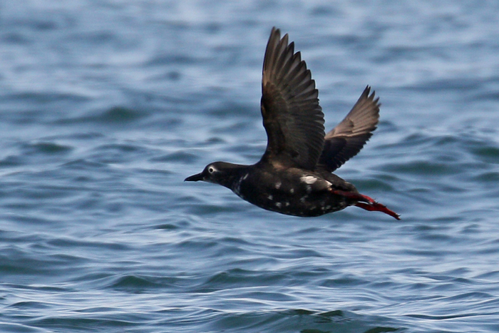 19日、この日はこのツアーを締めくくる落石クルーズでウミスズメ類や海ガモ類を撮影します。漁船を使ったクルーズのため欠航のリスクは高いものの、この日は過去にないほどの穏やかな海況になってくれました。落石クルーズは営業運行前から少々お手伝いをさせていただいた縁があり、また観光客が気軽に乗船するような観光船ではないことから我々のツアーでは応援する意味でも必ずツアーに組み込むようにしています。もちろんウミスズメ類が撮影可能な距離感で見られるという意味ではまさに唯一無二といってよいクルーズです。夏には妖艶な姿のエトピリカが主役ですが、冬季はなぜかこの海域でしか見られないウミバトが主役で、この日は銀白色に輝くアリューシャンウミバトのほか、ウミバト、ケイマフリ、ウミガラス、コウミスズメ、そして幸運なことにエトロフウミスズメを間近に撮影することもできました。ケイマフリやウミガラスは早くも夏羽に換羽した個体から冬羽個体、また換羽中の個体までさまざま撮影することができ、お馴染みのラッコやゴマフアザラシも撮影することができました。