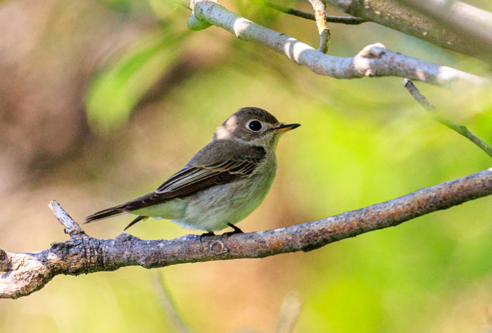 7日、今朝はスタート直後に、昨日の夕方に訪れた場所でムギマキが出現したという話が入り、予定を変更して向かった。すでに観察している人に聞いたところ、現われはするものの、すぐに茂みに飛び込んでしまうため、しっかりと観察するのは難しいらしい。しばらく待っていると、ようやく姿を現してくれたが、この時もわずかな時間現れただけで、皆でしっかりと観察することができなかったのは心惜しい出会いとなってしまった。