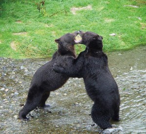 | 2 | 午前、バルクレー川で先住民のサケをすくい獲る伝統的な漁法ディップネットフィッシングを見学し、(車)→スチュワートへ向けて出発。午後、(車)→国境を越え米国アラスカ州の町、ハイダー到着後、サーモン氷河へ。夕方、グリズリーベアの観察チャンス。クマの観察は早朝と夕方が一番です。【スチュワート泊】 |
