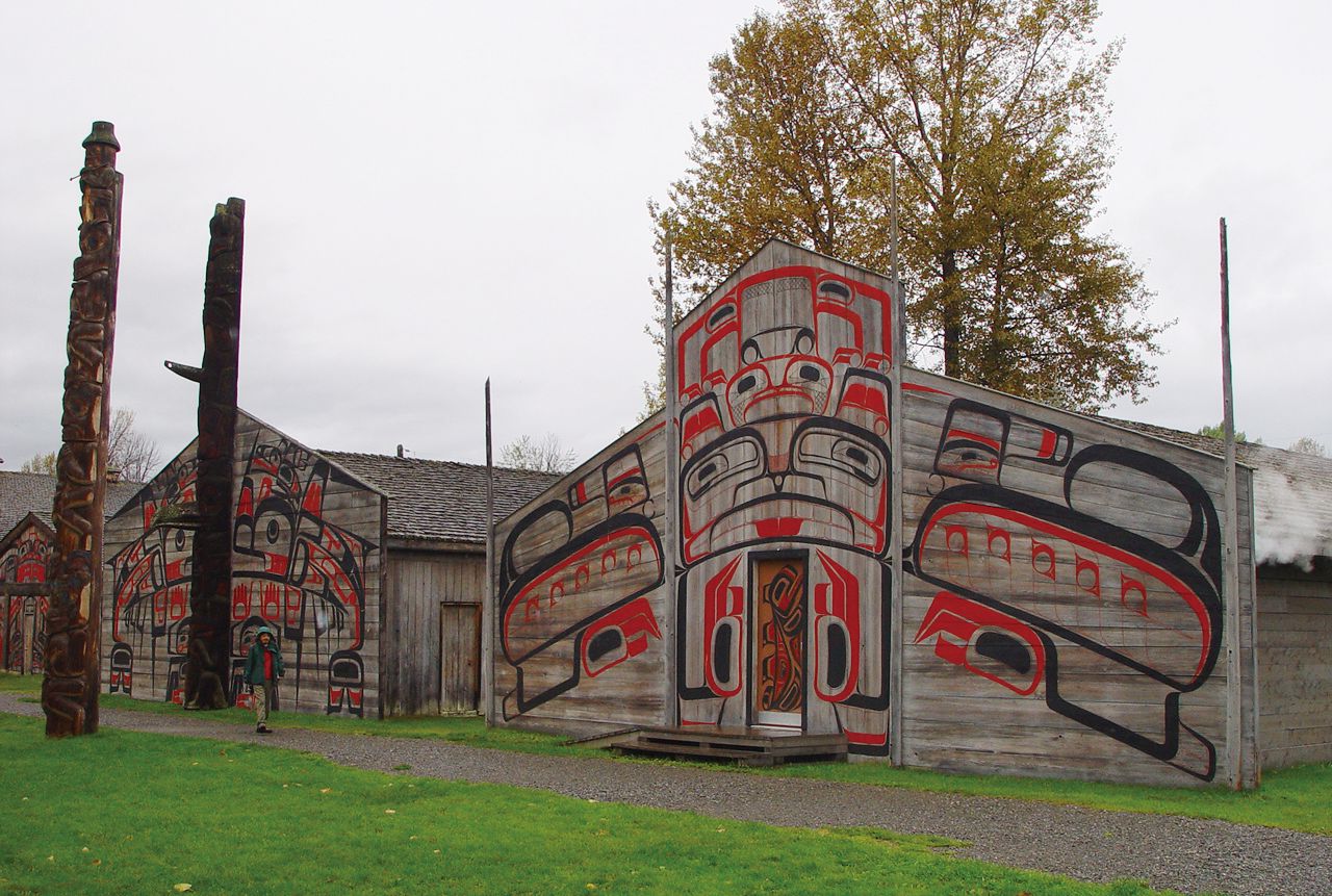 先住民は自分たちの祖先は、ハクトウワシ、ワタリガラス、シャチなどであり、かつて人間はそれらの動物と自由に行ったりきたりすることができたと考えていました。その祖先、家系伝説をクラン(Clan)といい、同じクランの大家族50人前後の単位で生活していたのが、ロングハウスです。木材は主にレッドシダーです。