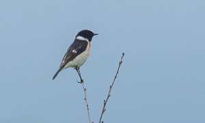 9日、そもそもこのツアーは東京駅前集合を通常のツアーよりも遅い09:00にして、遠方からのお客様にもご参加いただきやすくしています。余裕を持った集合時間にしていることもあってか特に問題なく順調にご集合が完了したことから、予定通り出発して富士山麓を目指しました。バスは曇り空の中央自動車道を走り、車内ではこのツアーで見られる可能性が高い種の解説や前回のツアーの状況などを話しながら進みました。まずはサービスエリアで休憩をとりましたが、空は相変わらず雲が多く雨が降ってくるのではないかと思ってしまうほどでした。休憩後は富士山に向かってさらに進み、到着した道の駅でバスを降りると思っていた以上に冷え込んでいて、空は相変わらずどんよりとしていました。まずはやや早めの昼食をとっていただき、同時に観察機材の準備もしていただいてから、いよいよ北富士演習場に入りました。北富士演習場は基本的には特定の日しか立ち入ることができないため、通常であればここぞとばかりに走り回るオフロードバイクや山菜を採る地元の方の姿が目立つのですが、この日はどちらかというとあまり人の姿はありませんでした。我々は場内を走りながらバスが安全に止められる場所でバスを降りて観察をするといったスタイルで観察を開始し、最初にバスを降りた場所では、早速、複数のホオアカがさえずっていて、望遠鏡で見てみると胸の鮮やかな模様がくっきりしていて美しく、付近の草にはノビタキのオスが止まっていました。観察していると周辺からはホトトギス、キジ、ヒバリの声が聞こえ、その後は標高を上げて一番外のルートを走ってみました。ただ標高を上げると徐々に風が強くなってきて一気に冷え込んできました。そのため何カ所かでバスを降りて探鳥しましたが、ほとんど鳥の姿がなく、2時間ほどが経ったこともあって一旦道の駅で休憩を取ることにしました。その後は再び北富士演習場に入り、逆回りで比較的近い別のエリアに行ってみました。まずは電線に止まっているモズが見られ、秋から冬にかけて平地で見られる個体とは異なった印象の姿を見ることができました。さらに進むとここではホオアカ、ノビタキよりもコヨシキリが目立ち、他にもなぜか尾羽がないウグイスが枯草に止まってさえずっていました。そして時間的にはやや早かったのですが、曇っていて周囲が薄暗いせいか、早くもオオジシギのディスプレイフライトが始まり、最初は1羽でしたがいつのまにか2羽になって、我々の頭上で騒がしく羽音を立てながら急上昇、急降下を繰り返していました。そして最後は遠くの木のてっぺんで鳴くカッコウを見てこの日の探鳥を終えました。結果的にはいつ雨が降ってきてもおかしくない空模様だったにも関わらず、雨が降ることなく終えることができました。