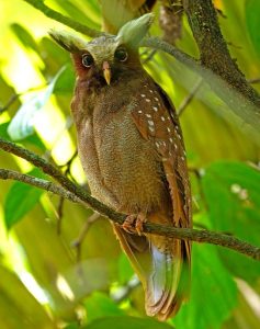 数多くの鳥たちとの出会いがあった今回のアマゾンですが、ツアーのハイライトを挙げるとすれば、鮮やかな黄色が美しいハリオマイコドリ、名前のとおり耳のような長い耳羽が特徴的なミミナガフクロウ、観察が難しいコビトトラフサギ、そしてアカハラサギなどでしょうか。