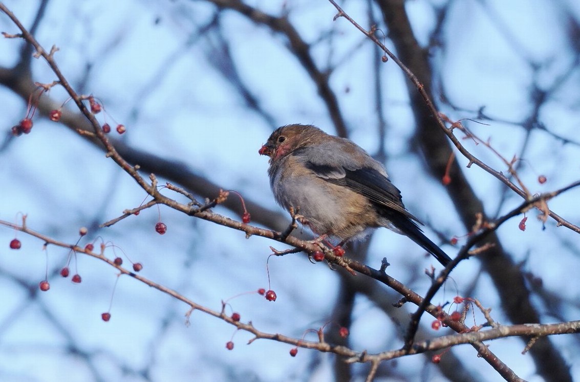 19日、この日の東京都内は早朝から快晴で前日に比べると冷え込んでいる印象でした。予定よりもやや早めにご集合いただいたことから、予定よりも少々早めに出発して、ひとまず奥日光に向けて東北道を進みました。バス車内ではこの日の行動予定、そして今日見られる可能性がある野鳥たちの解説しながら進み、まずは途中にあるサービスエリアで休憩をとりました。その後はさらに青空が広がってくる中を進み、まだまだ紅葉が美しい日光有料道路を走ってからいろは坂を上り、いよいよ左手に中禅寺湖が見えてくるとこの日もやや湖面は波立っていました。その後は陽光に照らし出された戦場ヶ原のを過ぎて最初のポイントに到着後は各自、観察機材の準備をしていただいてから探鳥をスタートしましたが、天気はほぼ快晴ながら気温が−3℃ということでバスを降りると明らかに前日よりも寒く感じました。まずはいくつかある小さなせせらぎを丹念に見ながら進み、流れに沿うように歩きながら餌を探すミソサザイに出会うことができました。さらに木道を歩くと、途中、コガラ、ゴジュウカラ、キバシリの混群に出会うことができ、一時的に賑やかな時間を過ごすことができ、さらに進むと川沿いにある流木に止まってさえずっているカワガラスに出会うことができました。この場所はとにかくカワガラスの密度が濃く、その後も何回かカワガラスには出会えたものの、この時間は残念ながらアオシギに出会うことはできず、一旦バスに戻って昼食の時間にしました。ただこの時間を使って周辺を見直してみると、さきほどの時間にも見たはずの場所でせっせと採食しているアオシギがいたことから、予定を少々変更して再度行ってみることにしました。すると川沿いの浅瀬で、独特の上下運動をしながら採食しているアオシギがいたことから30分ほど観察、撮影してから次の場所に移動しました。ここからは前日とは明らかに異なる雪景色が見られ、バスを降りて探鳥すると各所に雪が積もっていました。ここでは付近にあるズミにニホンザルが多数きていて、キハダの実にはツグミが群れていました。またアオゲラが飛んできてシラカバに止まっていて、さらに歩くと今度はナナカマドにツグミが群れていました。その後はツタの実を必死についばんでいるアカゲラを見てから、次のポイントに移動しました。やや時間が押していたことから1時間ほどしか時間がなかったですが、木道を歩いていくとズミの実には複数のコガラがやってきて実をついばみ、川には数羽のマガモの姿がありました。さらに歩くとエナガの群れが間近にやってきて水浴びを繰り返していて、その後は木に戻って羽繕いをしていました。また周辺ではウソの声が聞こえ、よく見てみると3羽がズミの実をついばんでいました。そしてそろそろ戻ろうかと思った時、カラマツに止まっていた2羽のレンジャク類が「ヒー」と鳴いてから飛び立ていきました。種類まではわかりませんでしたがこの冬に期待を持たせてくれる出会いでした。