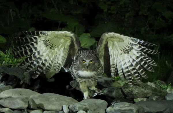 初日の午後と2日目の午前中は知床の海に生きるシャチやマッコウクジラ、イシイルカ、ミンククジラなどを観察するクルーズに乗船します。この時期の主役はシャチですが歯クジラ類最大で体長18mにも及ぶマッコウクジラにも期待できる時期で、フルマカモメやハシボソミズナギドリ、ハイイロミズナギドリ、アホウドリ類など海鳥類も多い時期です。そして夜にはシマフクロウをおおよそ22:00まで観察します。