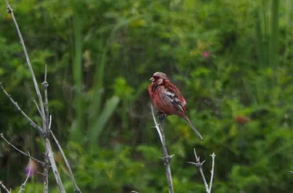 2日目の午後は知床峠でギンザンマシコを探しますが、クルーズ欠航時や知床峠悪天候の場合は先を急ぎ、オホーツク海沿いの原生花園で小鳥類観察を行います。そして最終日はオホーツク海沿いの原生花園をめぐります。この時期はシシウドやハマナス、エゾカンゾウ、センダイハギなどの花々が咲き乱れる中、ツメナガセキレイ、ノゴマ、シマセンニュウ、ベニマシコ、オオジュリン、ノビタキ、そして最近あまり見られなくなってしまったマキノセンニュウを探します。クルーズ乗船時、またオホーツク海沿いでは特に早朝に冷え込みますので防寒装備、また雨具もお持ちください。
