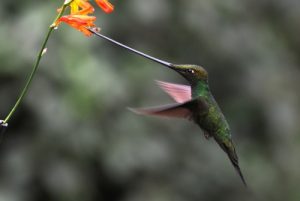 南アメリカのなかでも特に人気の高いエクアドルですが、このアンデスのツアーの大きな魅力はハチドリの仲間です。高地には嘴がもっとも長い鳥として有名なヤリハシハチドリを筆頭に、ニジハチドリやエクアドルヤマハチドリが見られ、行く先々で違うハチドリ仲間が現れるため、ツアーを通して49種ものハチドリを観察することができました。