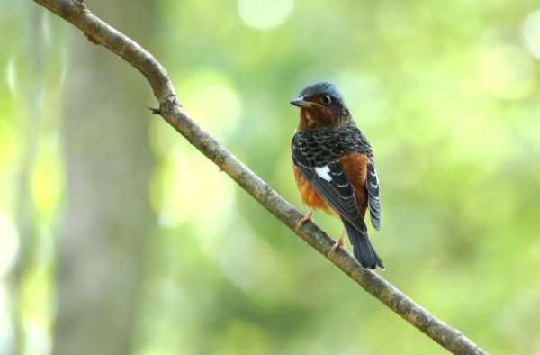 次いで2日目は人気の高い世界遺産アンコール遺跡群で探鳥と遺跡観光を行いましたが、オオスズメフクロウ、インドコキンメフクロウなどのフクロウ類やヒメイソヒヨなどの姿を楽しみ、日本語ガイドの案内のもと、遺跡観光を行いました。3日目に訪れた森林内のハイドでは期待したミドリシマヤイロチョウ、アカハシハシリカッコウが現れず残念な思いをしましたが、その翌日には世界的稀少種のベンガルショウノガンを繰り返し観察したほか、オガワコマドリやクロノビタキといった日本の珍鳥たちに加えてヒメヤマセミやミドリハチクイといった鳥たちも楽しみました。ご参加いただいた皆様、ありがとうございました。