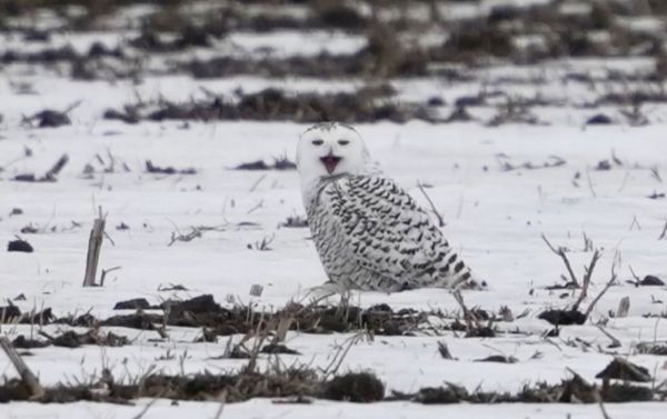 今冬のカナダ、オンタリオは例年よりも冬の寒気が厳しいという知らせが事前より届いていたので覚悟してカナダに向かいましたが、トロントに降り立つと雪も少なく、ツアーを行った期間はちょうど寒気が緩んだらしく、逆に例年ほど寒くない日々でした。しかし、その一方でオンタリオ湖の島でシロフクロウを探している時は、現地で注意報が出るほどの強風が吹き荒んでおり、例年シロフクロウを観察しているオンタリオ湖内の島ではシロフクロウを残念ながら発見することが出来ませんでした。しかし、今冬はオタワ近郊でも渡来が確認されていたことから急遽、予定を変更してそちらを訪れることとしたところ、農耕地の中のシロフクロウを無事に観察、撮影することが出来ました。